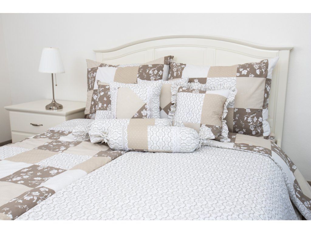 Bavlněné povlečení 200x200, 2x70x90 Patchwork Nougat / ornamenty (poslední 1 kus)