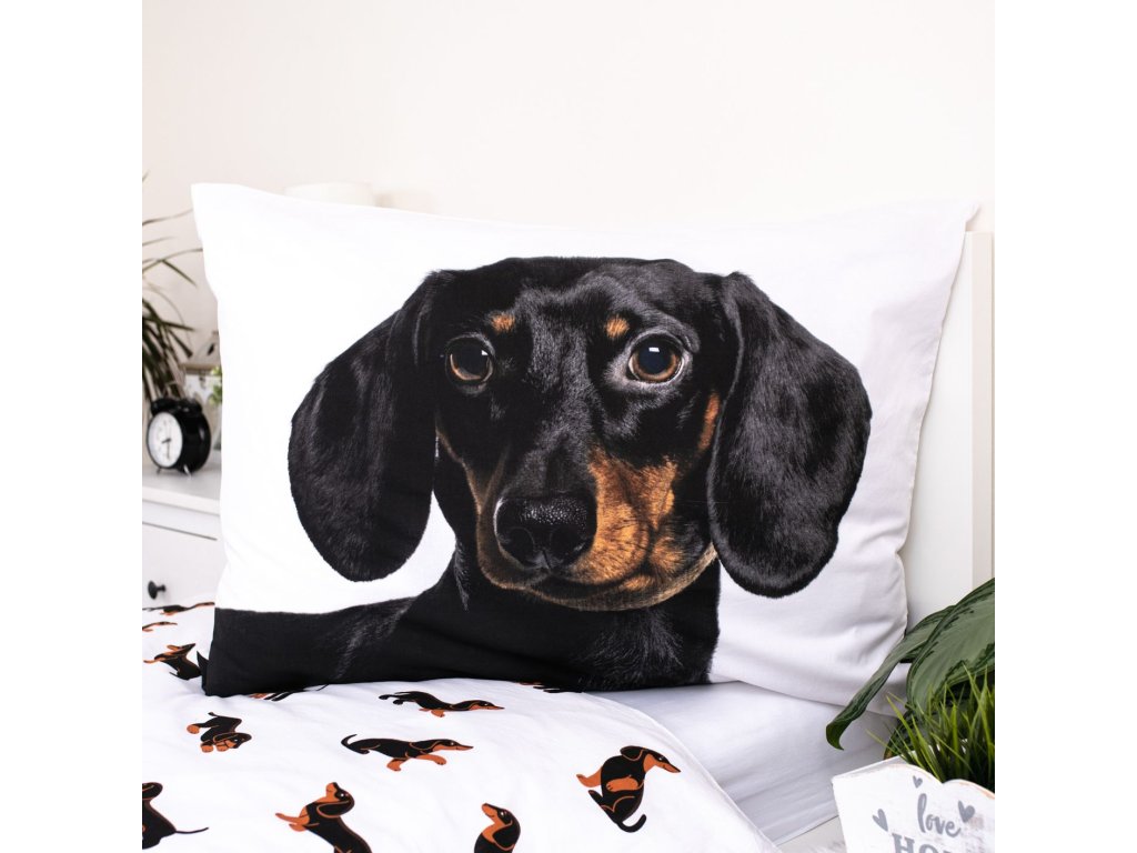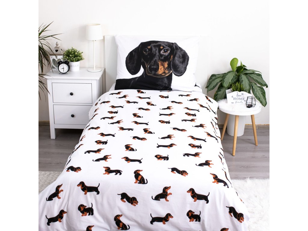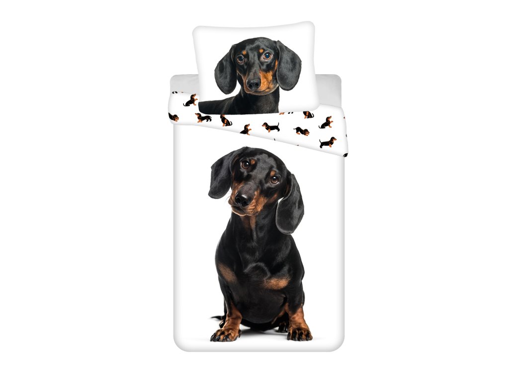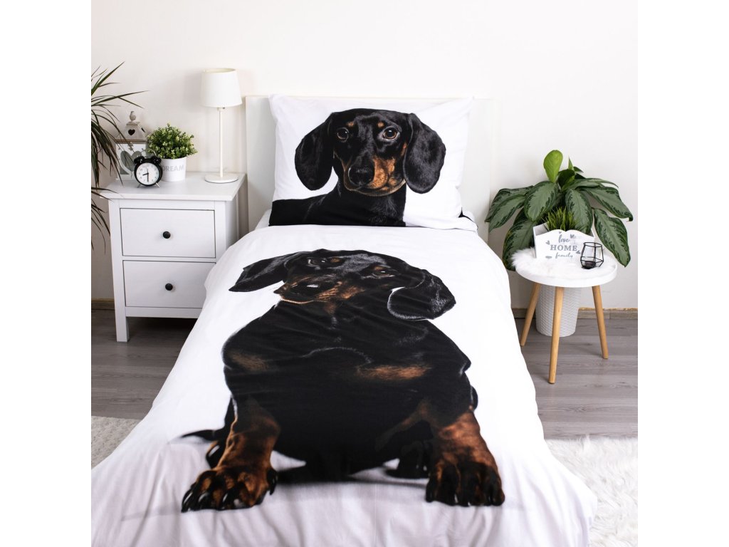 Ložní souprava s reálným fotomotivem jezevčíka v rozměru 140 x 200 cm + 70 x 90 cm.