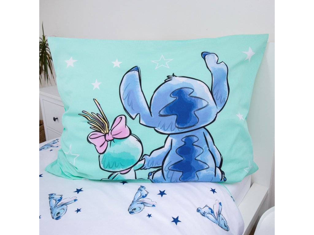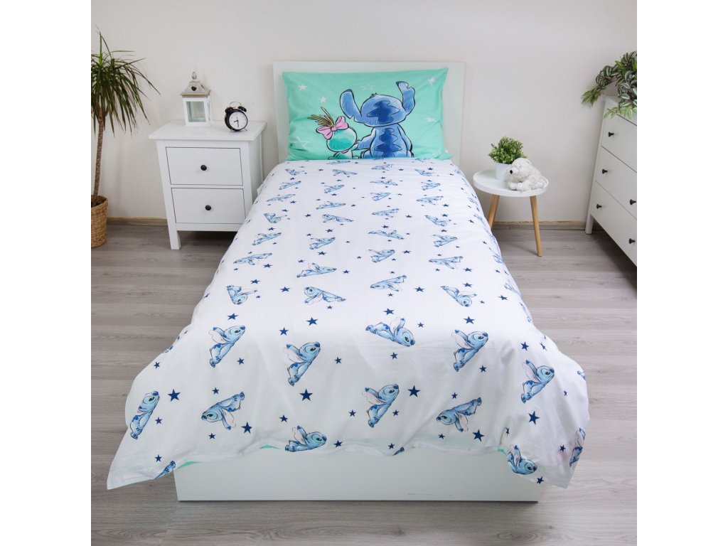 Roztomilé a hravé povlečení s motivem oblíbené postavičky z pohádky Lilo & Stitch promění každý dětský pokojíček v kouzelné místo plné fantazie. Svěží mintová barva působí jemně a moderně, takže se bude krásně vyjímat jak v holčičím, tak i klučičím pokoji.