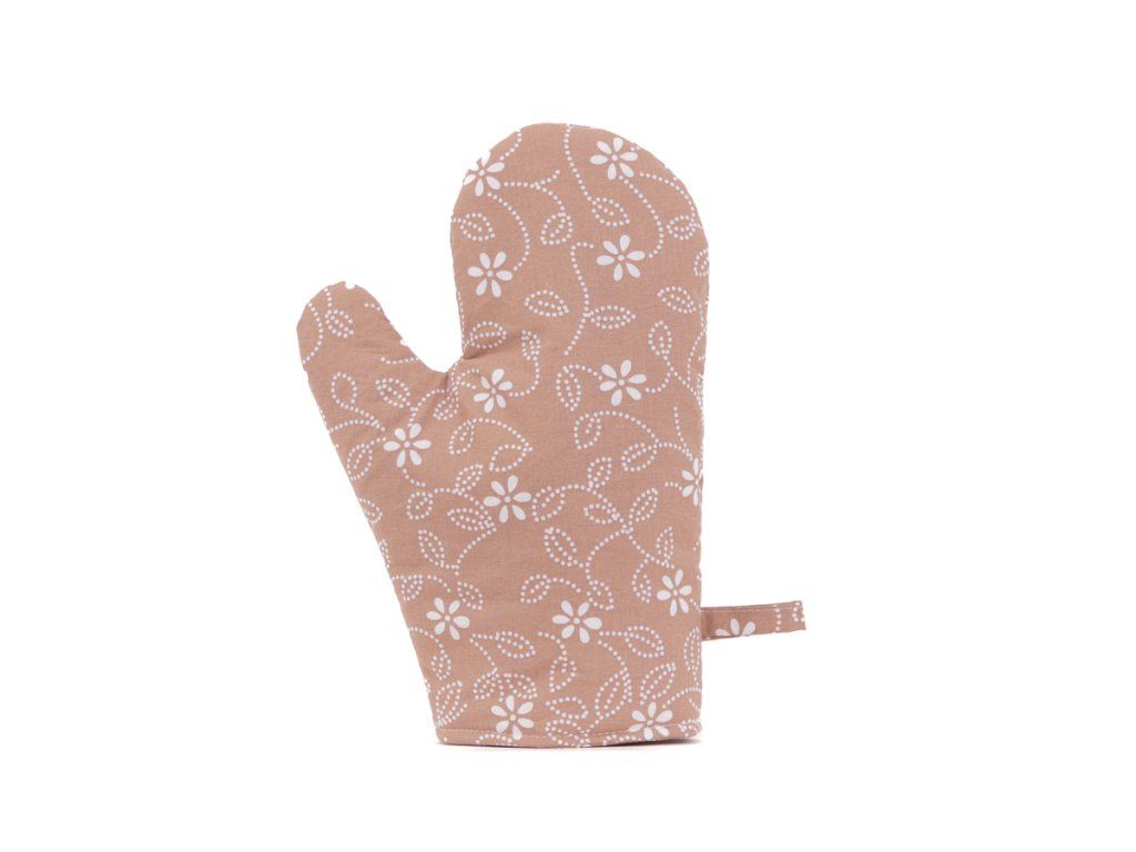 Stylová béžová chňapka s květinovým vzorem z bavlny