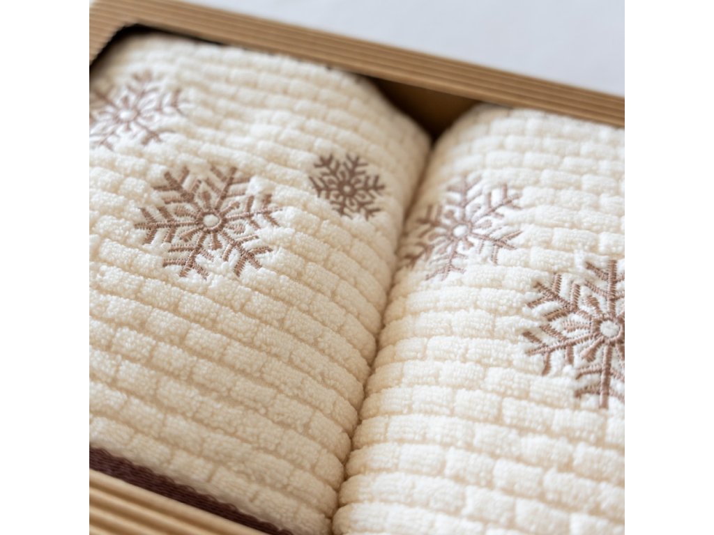 Každý ručník je zdoben jemnou výšivkou vánoční vločky, která dodává setu kouzlo Vánoc. Perfektní jako stylový a praktický vánoční dárek.
