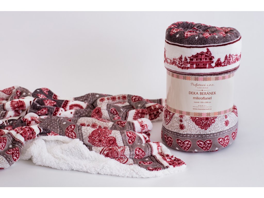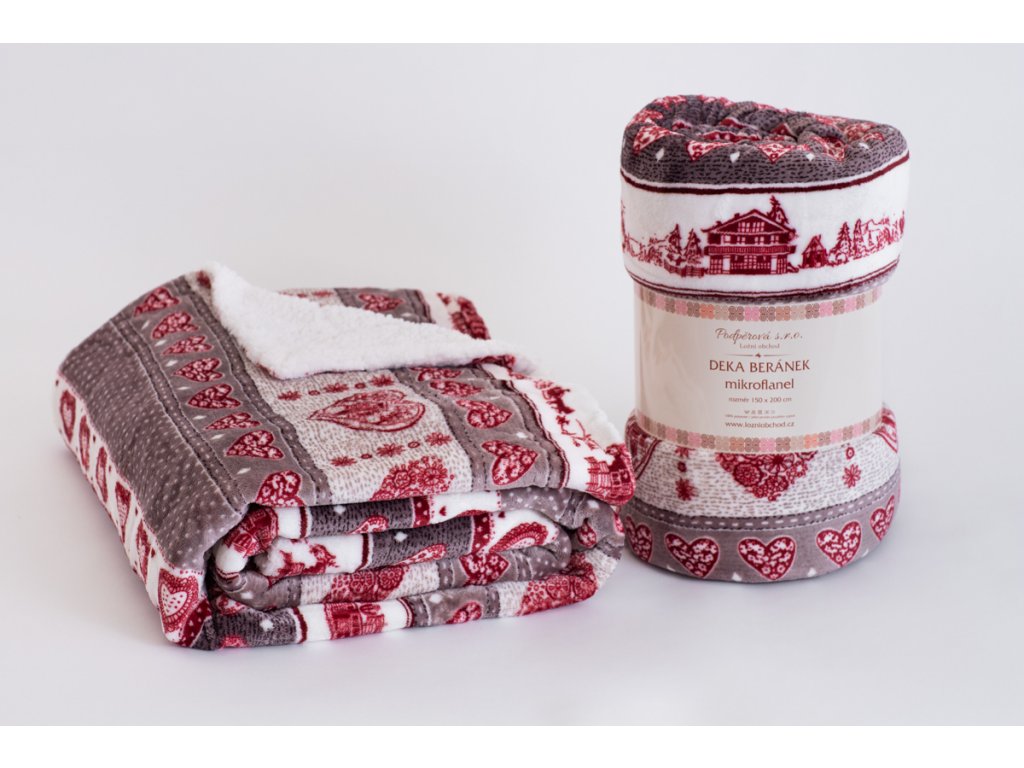 Deka mikroflanel s BERÁNKEM srdce červená 150x200 cm
