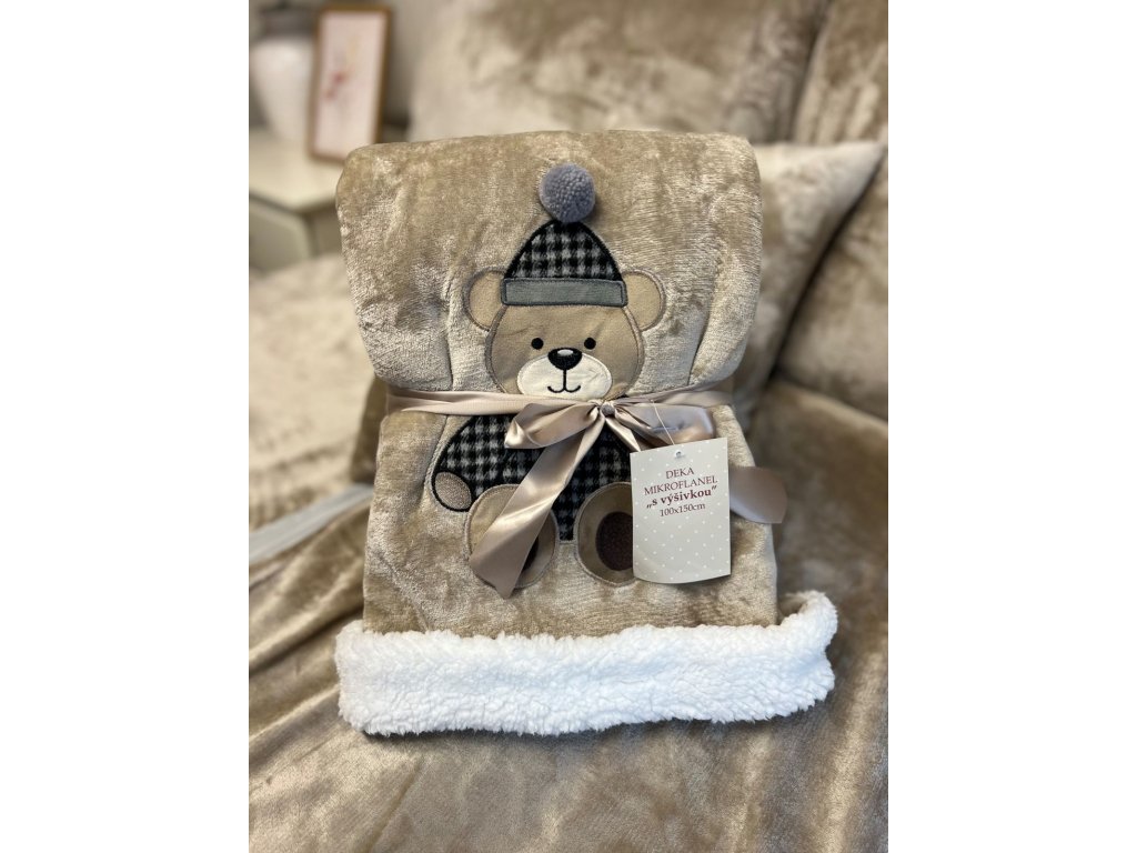Dětská deka s beránkem BÉŽOVÁ s medvědem 100x150 cm
