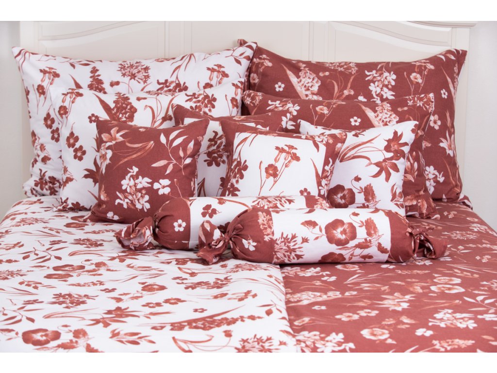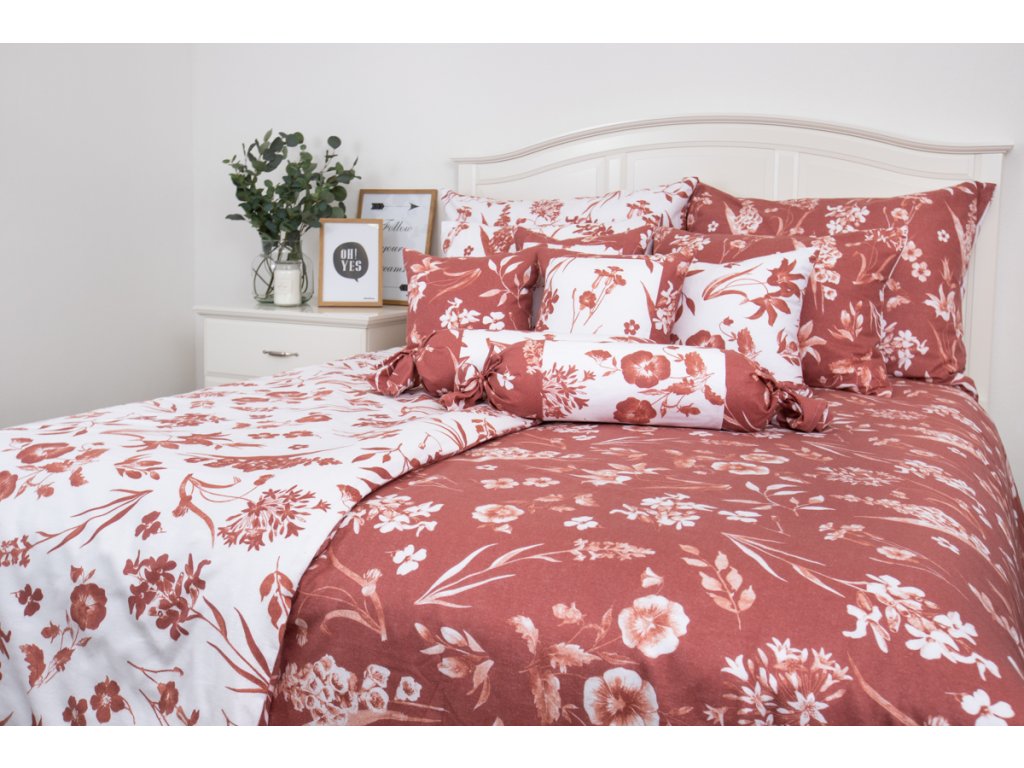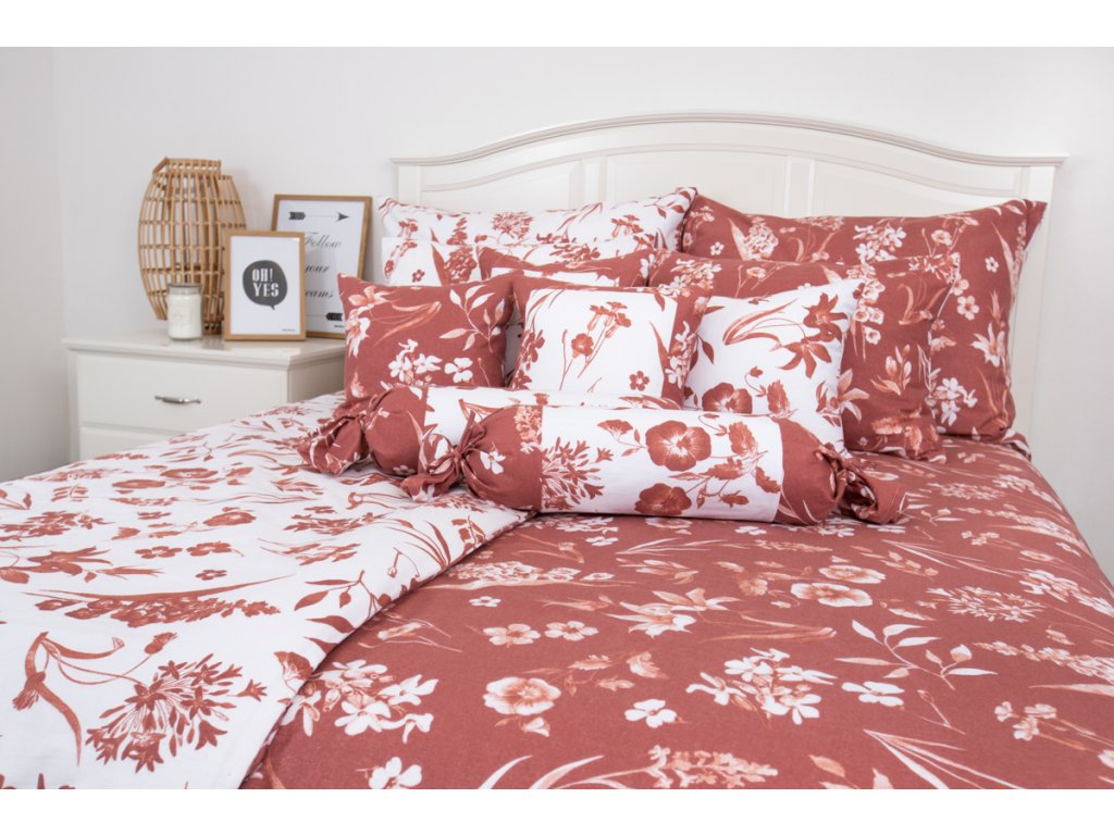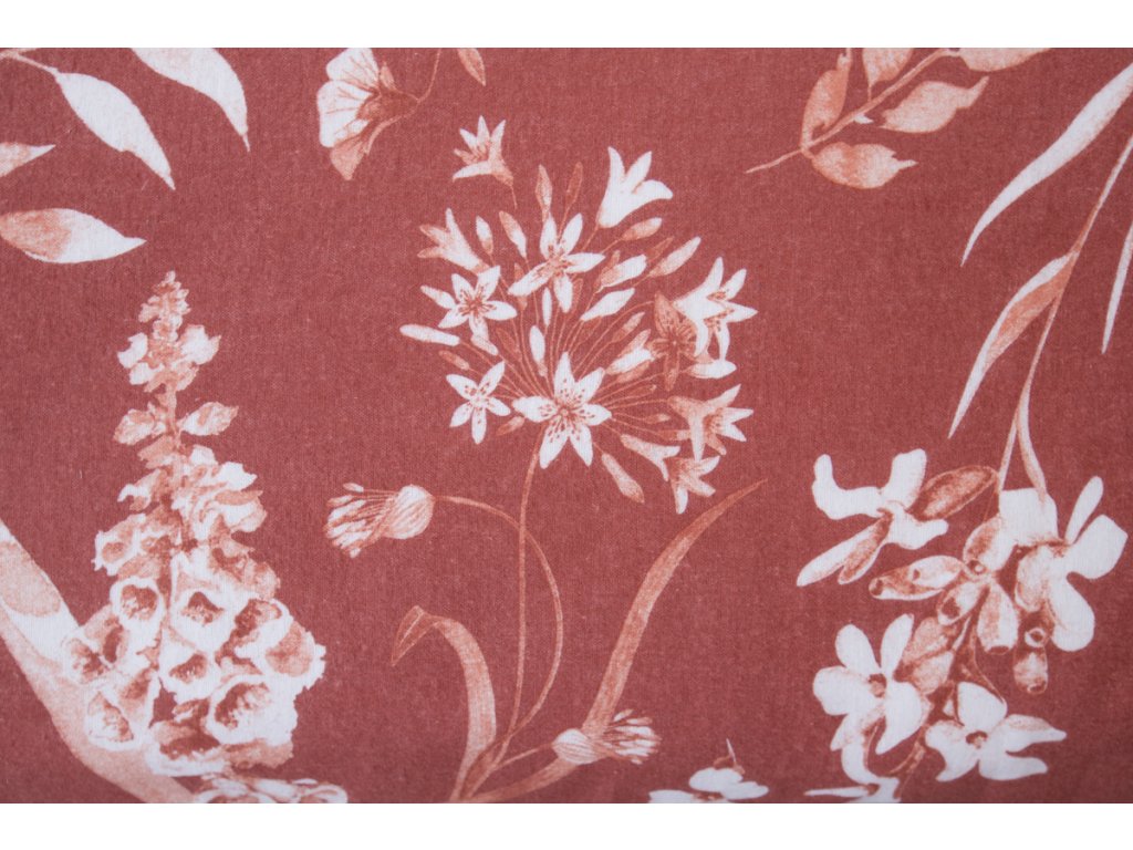 Flanelové povlečení FLORA terakota poz/neg prodloužené 140x220, 70x90 cm