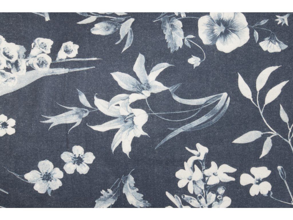Flanelový polštář Flora Indigo tmavý 40x40 cm