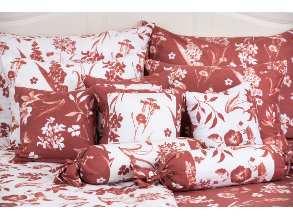 Flanelový povlak na váleček FLORA terrakota P/N