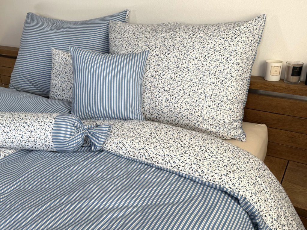 Modré bavlněné povlečení PATCHWORK 100% hladká a jemná bavlna Renforcé Zapínání na zip Gramáž 140 gr/m2 Certifikát kvality OEKO-TEX 100 Ušito v České republice ...