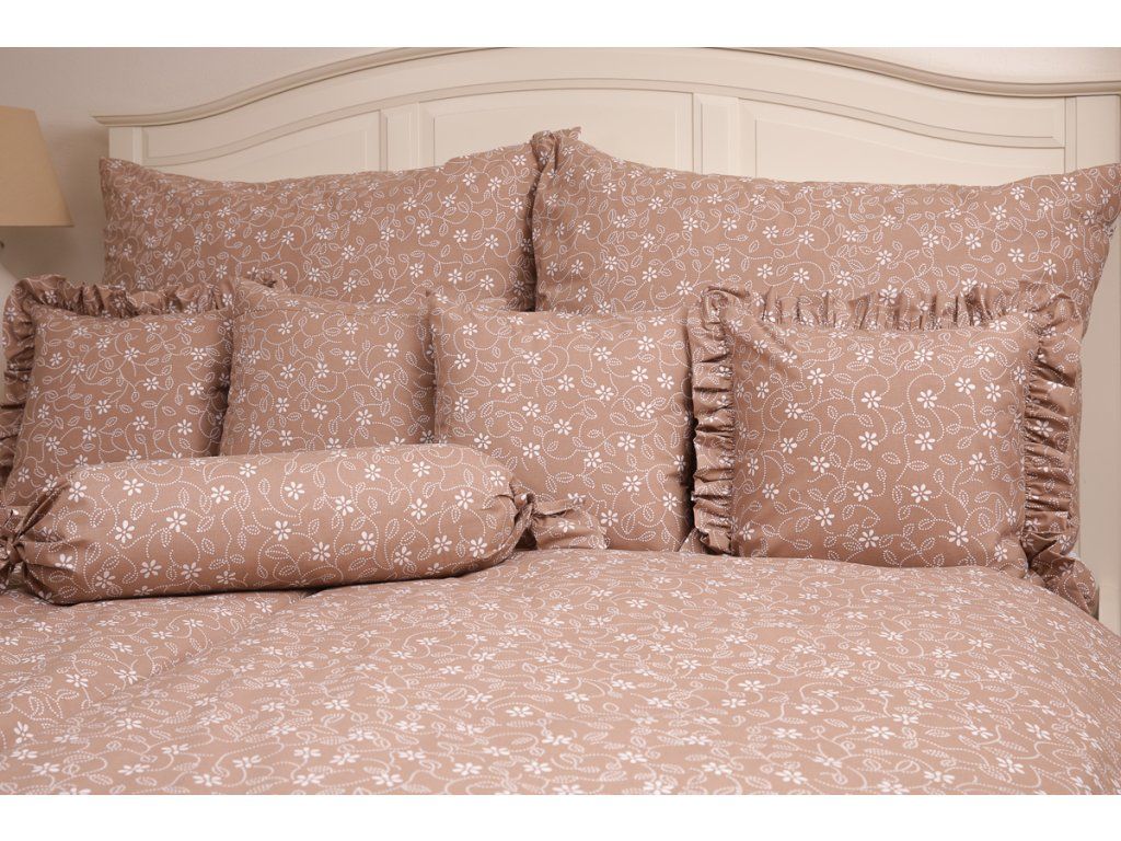 Klasický povlak na polštář – béžové provedení s bílými kvítky, bavlna nebo krep