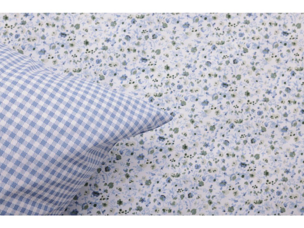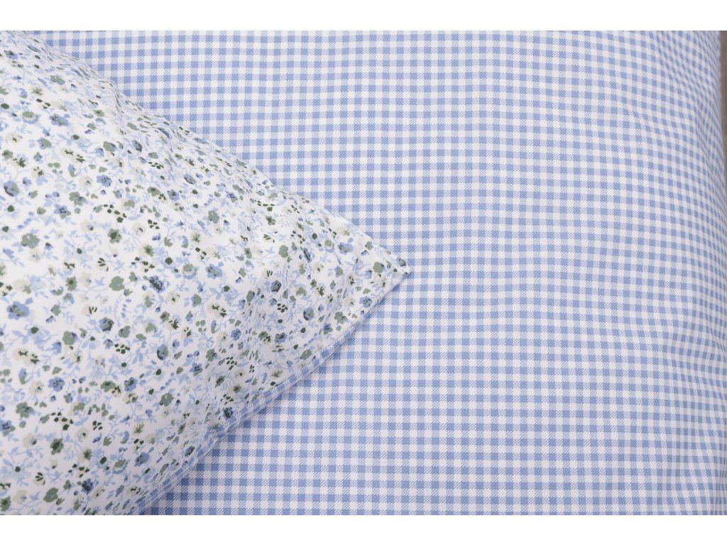 Krepové povlečení 100% bavlna – Inés / modrá kostička, zip