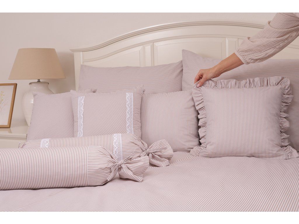 Proužkované krepové povlečení je elegantní a praktickou volbou pro každou ložnici. Povlečení má zapínání na zip, které usnadňuje převlékání. Kromě klasických rozměrů nabízíme také šití malých polštářků a válečků ve stejném designu, díky čemuž si můžete svou ložnici dokonale sladit.