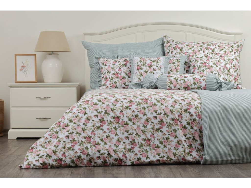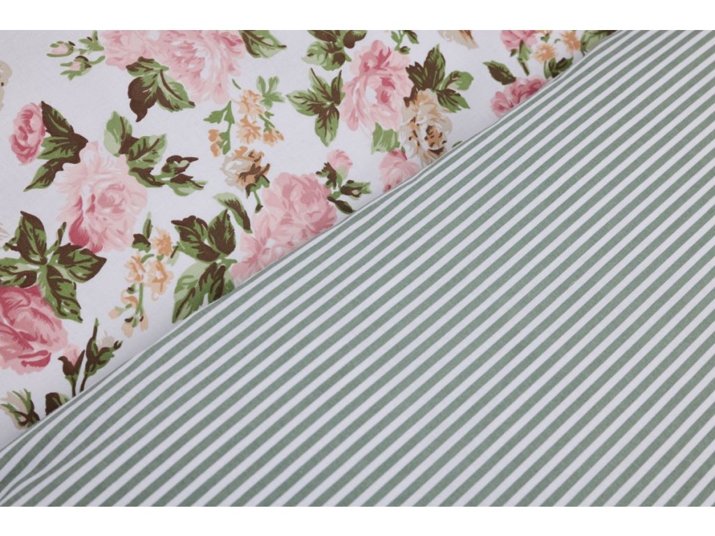 Elegantní kombinace zelených proužků a rustikálních růží. Naše oboustranné vende krepové povlečení nabízí z jedné strany jemný proužkovaný vzor a z druhé romantický potisk růžiček. Vyrobeno z kvalitního českého krepu, který je příjemný na dotek, snadno se udržuje a není třeba ho žehlit. Praktické zapínání na zip. Dostupné jako povlečení na jednolůžko i dvoulůžko.