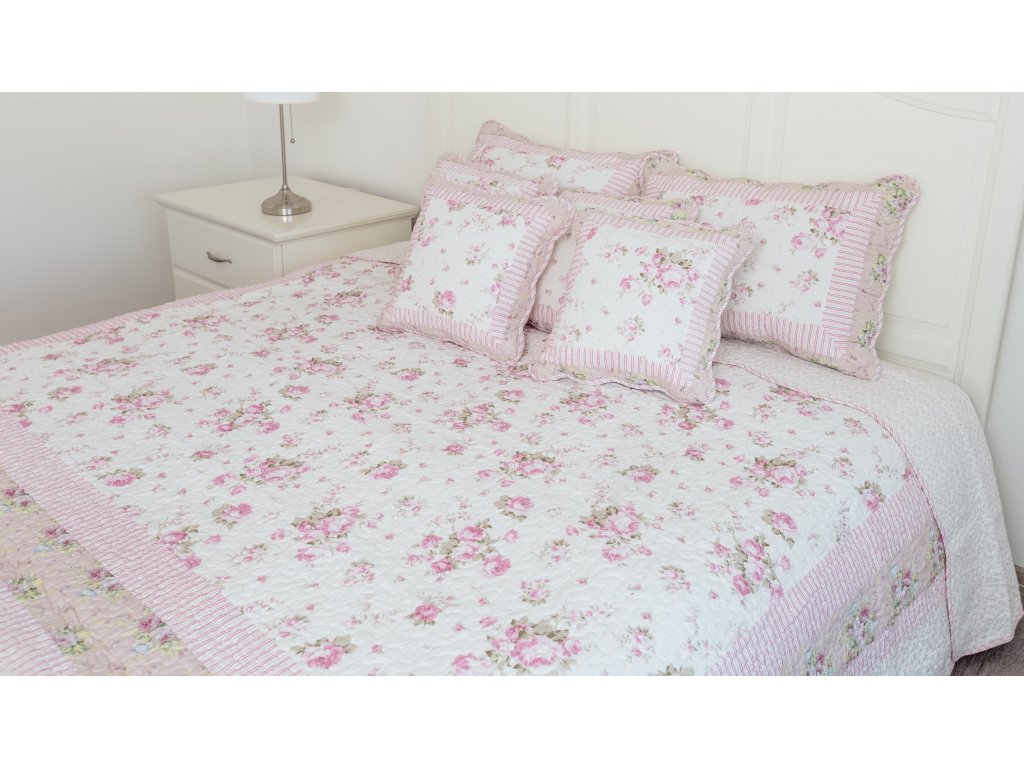 Oboustranný prošívaný přehoz RŮŽE 140x200 cm (poslední 1 kus)