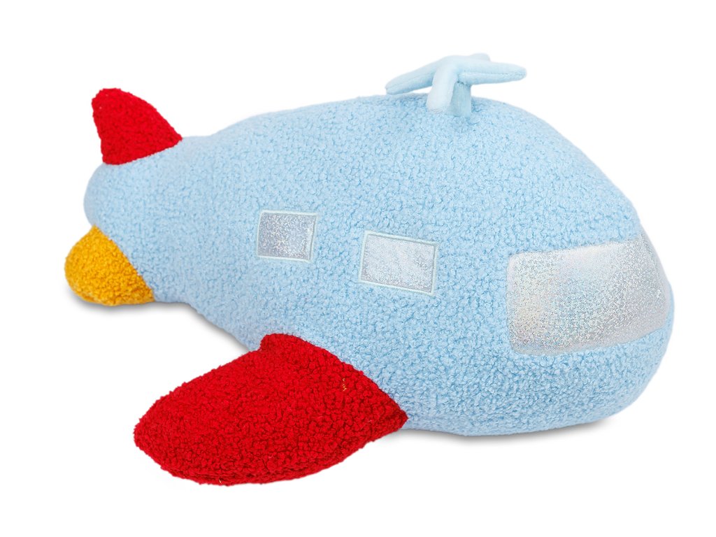 Roztomilý plyšový polštář v designu letadla si zamiluje každý malý kluk. Měkoučký plněný polštářek ve tvaru letadýlka ve světle modré barvě je ideální nejen na odpočinek, ale i jako hravá dekorace do dětského pokoje. Díky praktické délce 55 cm poskytuje pohodlnou oporu při spánku, hraní i cestování.