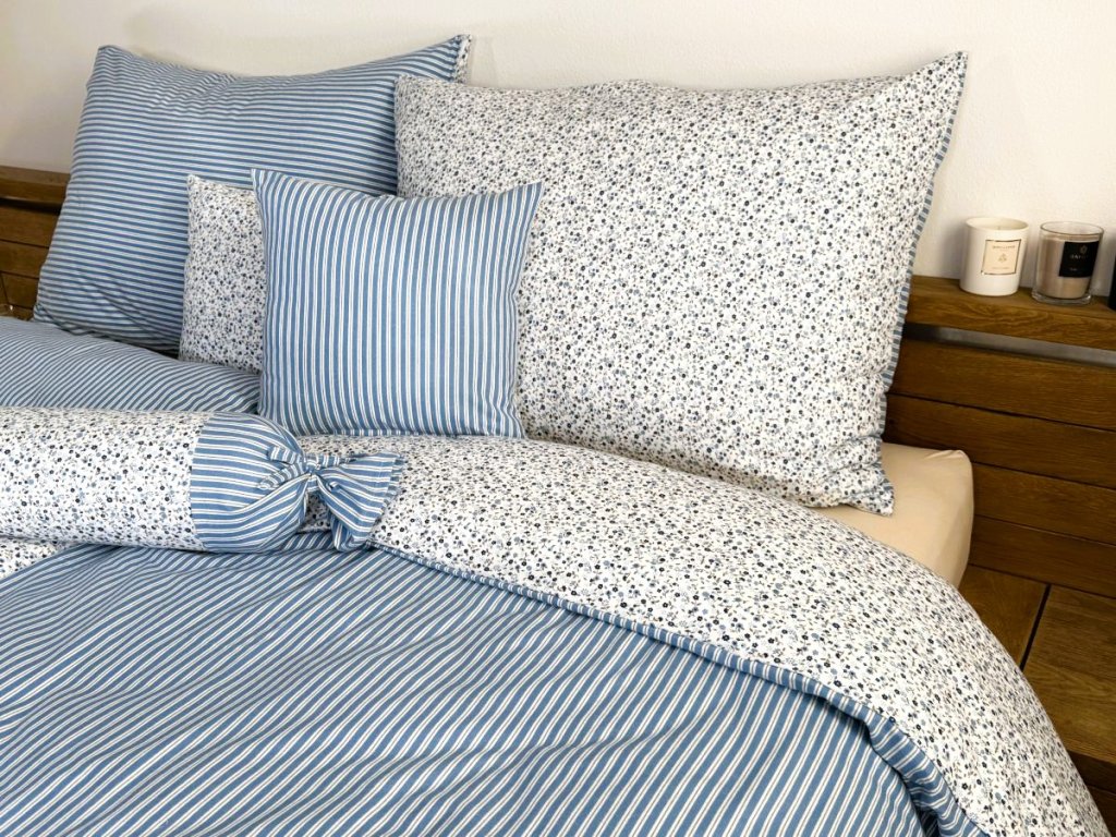 Modré bavlněné povlečení PATCHWORK 100% hladká a jemná bavlna Renforcé Zapínání na zip Gramáž 140 gr/m2 Certifikát kvality OEKO-TEX 100 Ušito v České republice ...