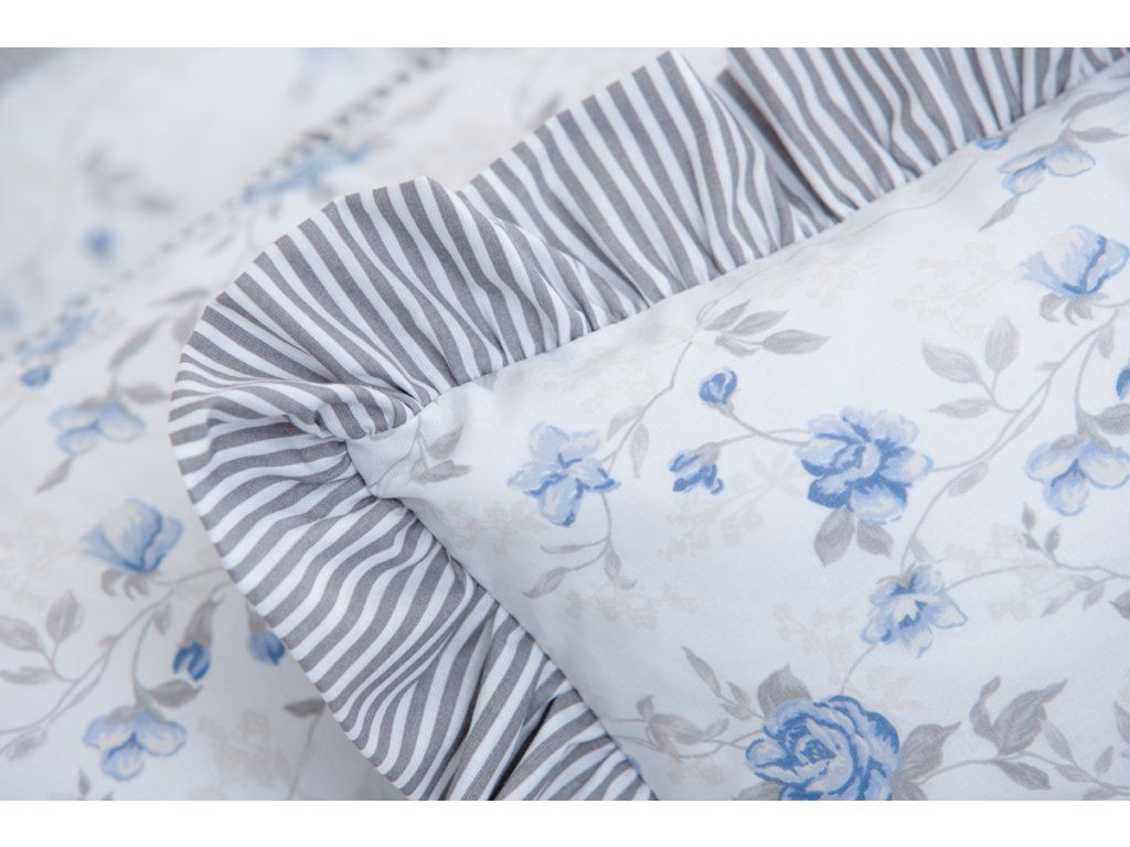 Polštář s kanýrem Růže modrá / šedý pruh 40x40 cm