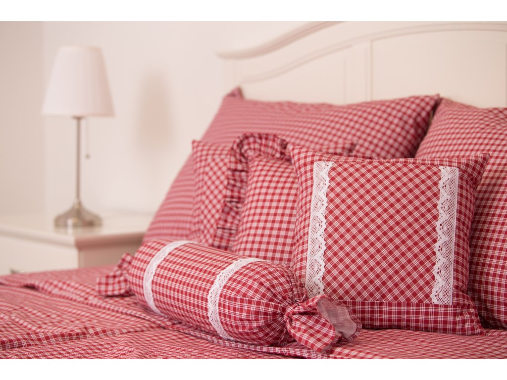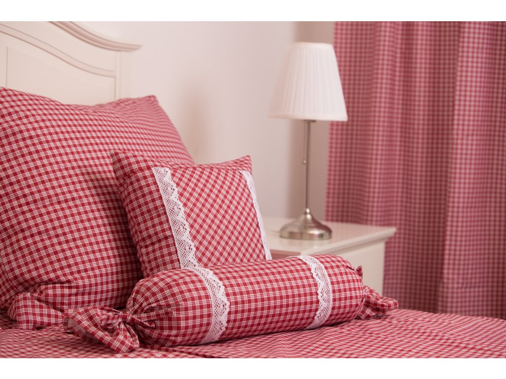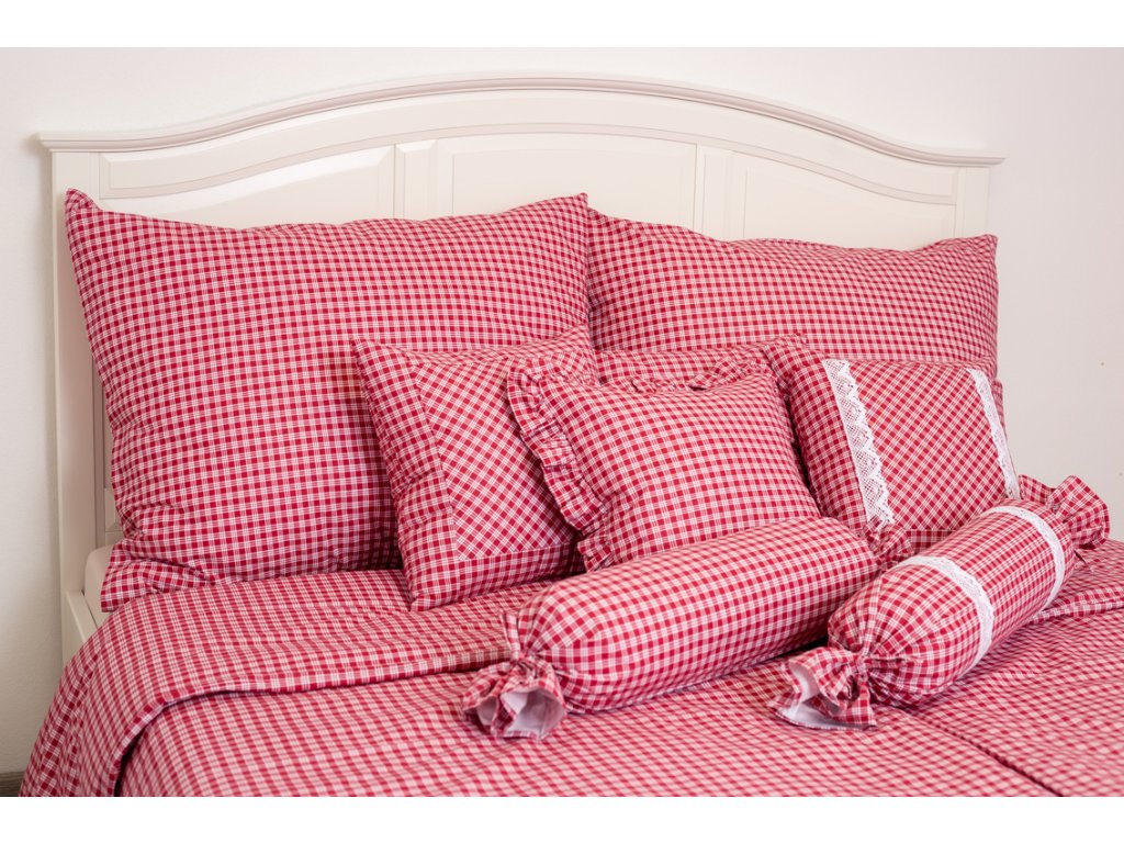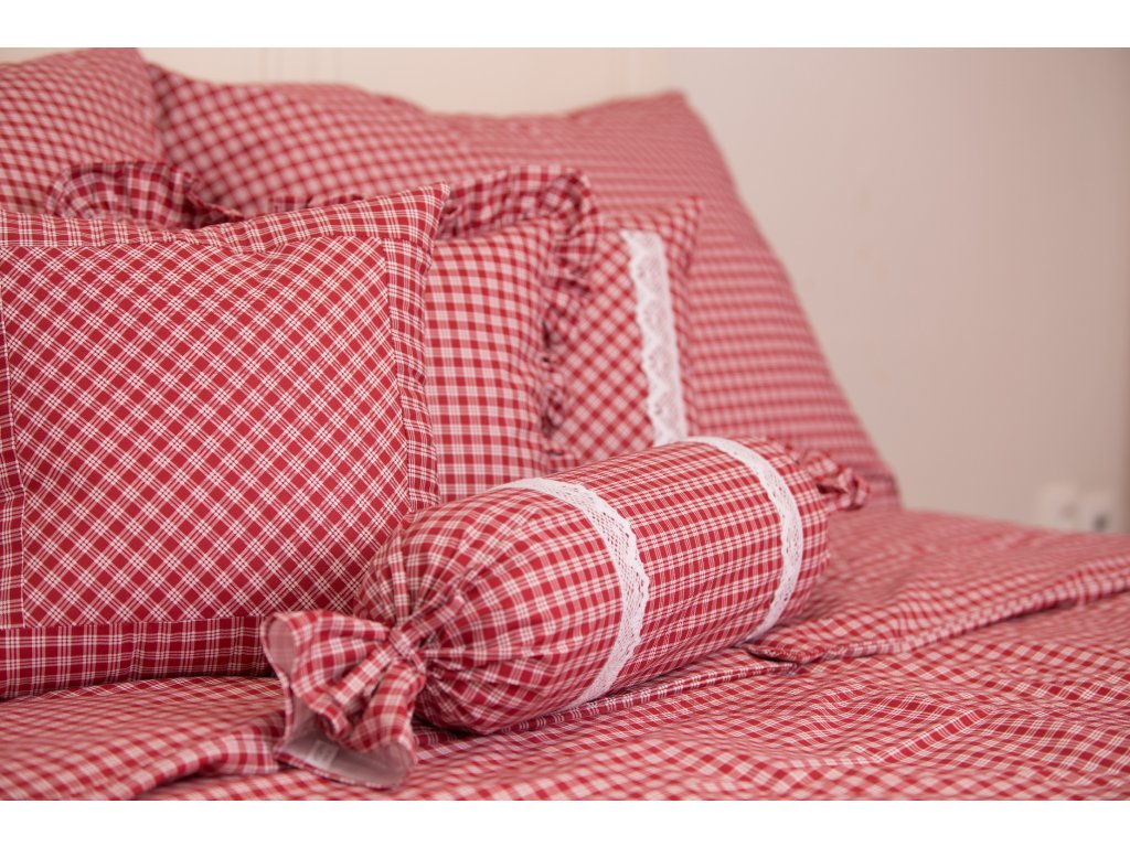 Povlak na polštářek prošitý v přední části. Je ušitý ze 100% bavlny, má zapínání na zip na zadní straně. Pasuje k povlečení červená kostička tmavá / pozitiv.